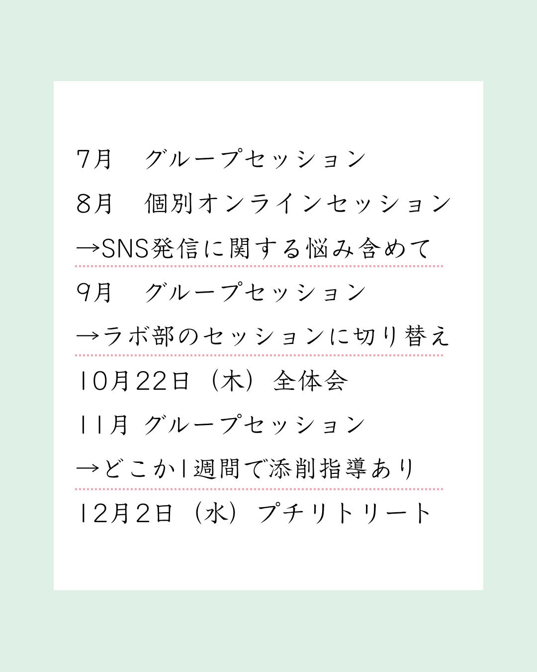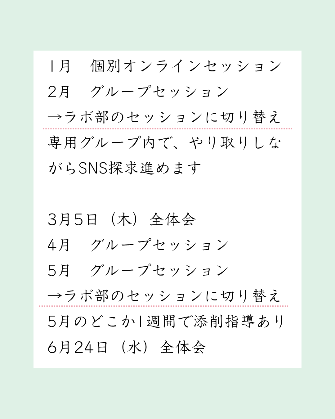 通常3回で25.000円のハッシンラボ(対面)講座を1年かけてゆっくりとお伝えします。
